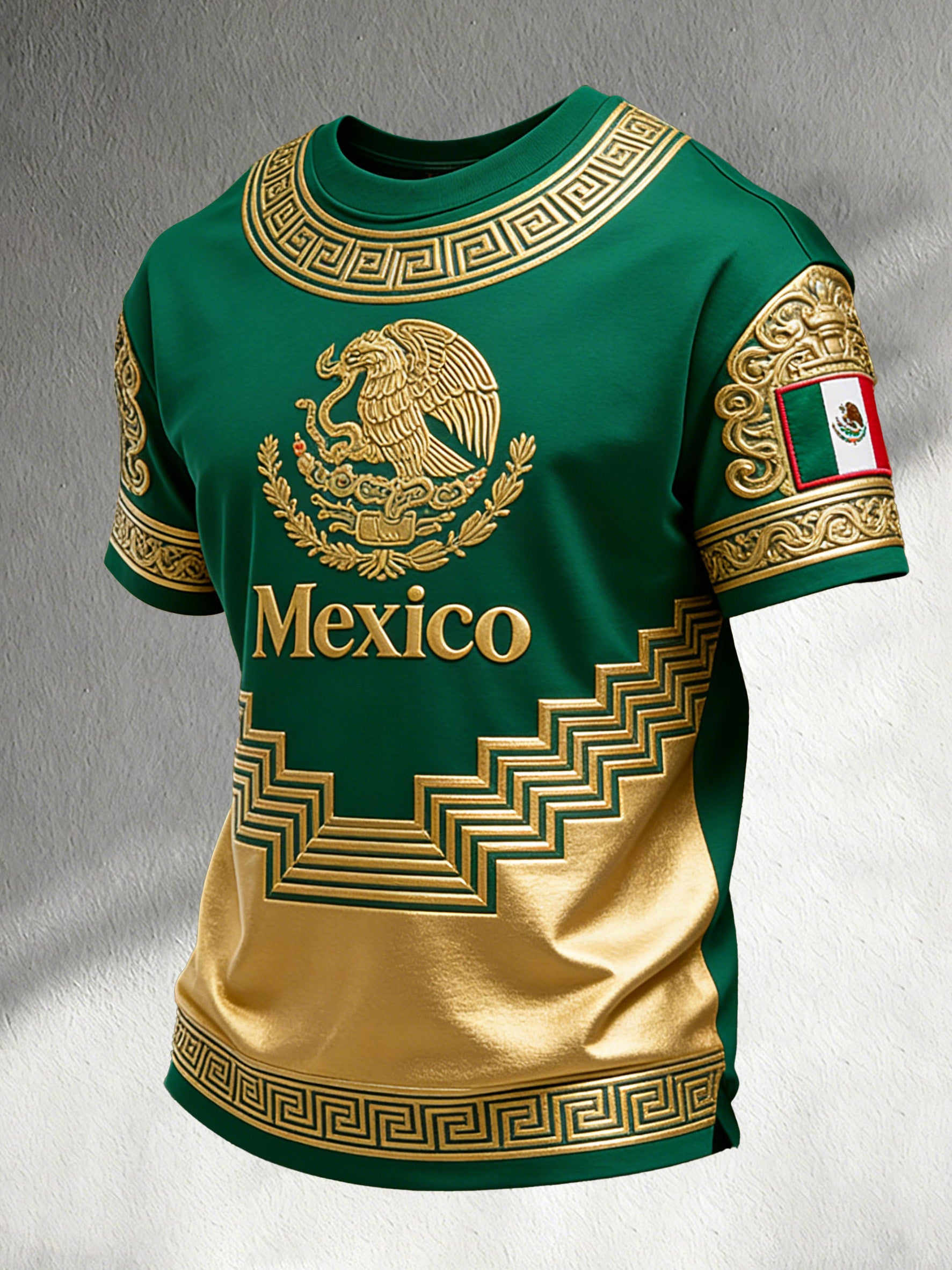 Men's Mexican Football Cheerleading Embossed Textured Art Print T-Shirt