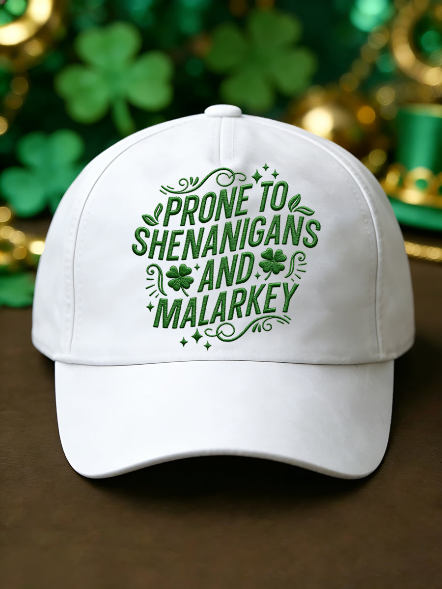Unisex Funny St Patrick's Day Prone to Shenanigans and Malarkey Shamrock Print Hat